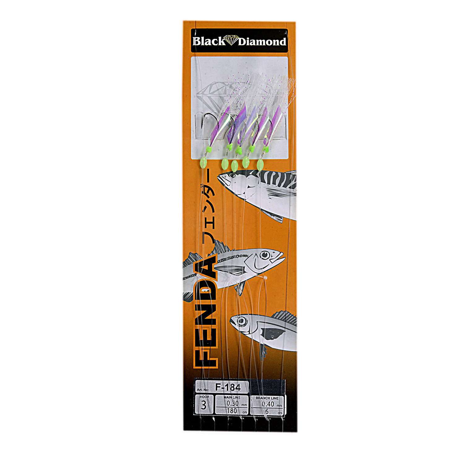 Το Τσαπαρί Black Diamond F 184 είναι ένα τσαπαρί με 6 αγκίστρια καλυμμένα από φτερό. Η μάνα έχει πάχος 0,40mm, το παράμαλλο 0,30mm και το συνολικό μήκος του είναι 1.40.
